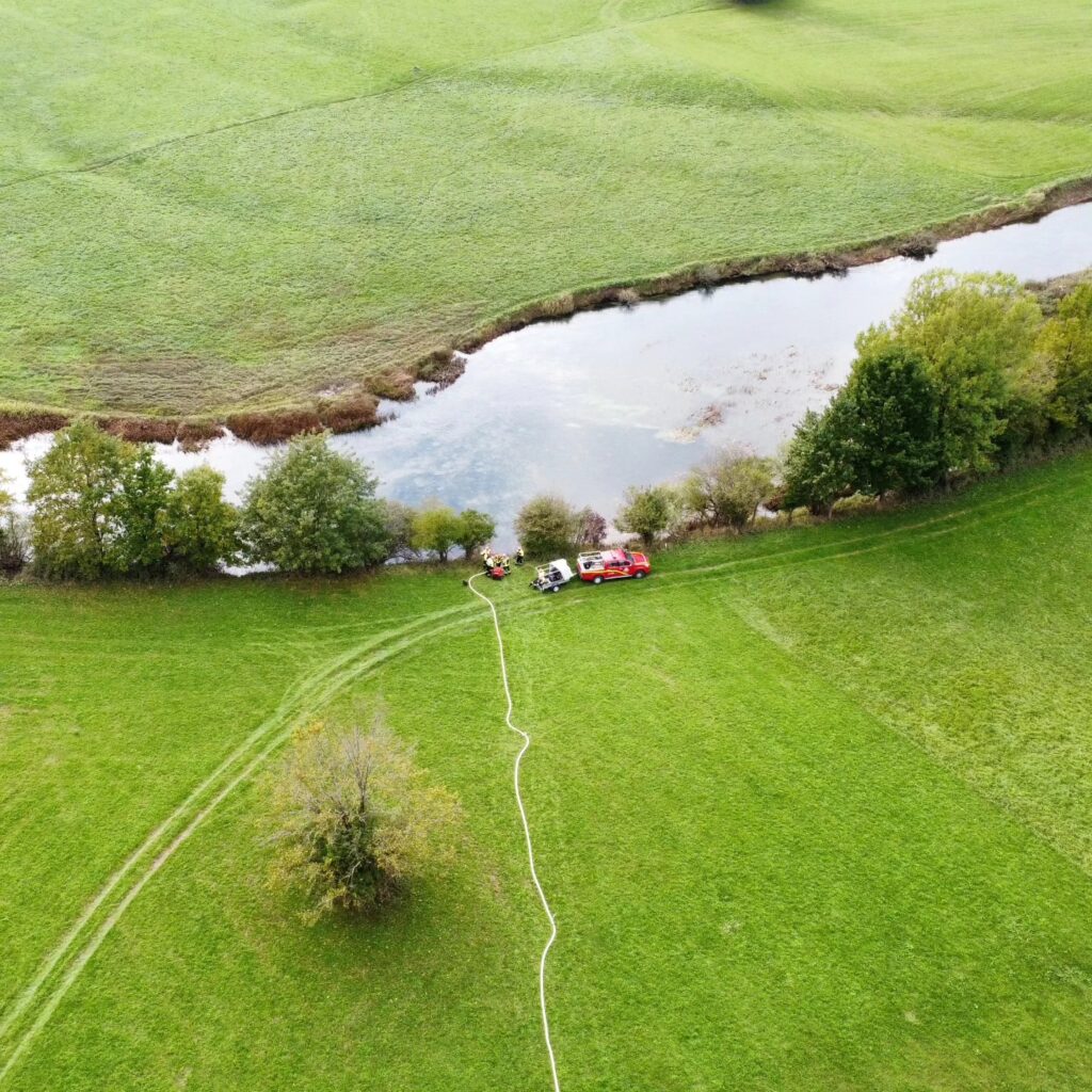 V soboto smo izvedli sektorsko vajo skupaj s PGD Rakek in PGD Unec smo črpali vodo iz reke Unice proti Ivanjemu selu.